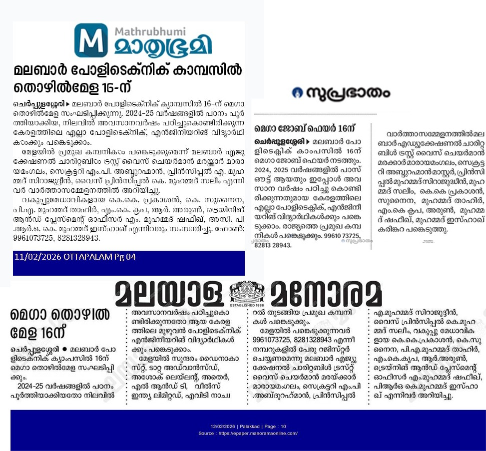 “My experience at Malabar Polytechnic has been great and unforgettable. The mentors at Malabar Polytechnic helped us to enhance my academic and personal skills.”