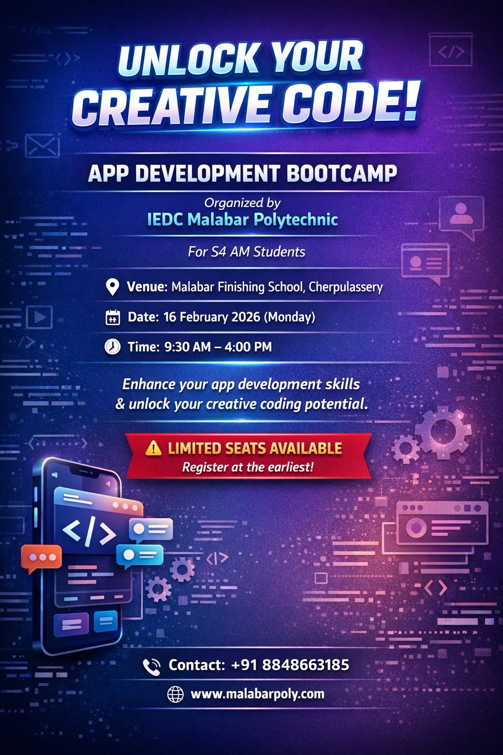 IEDC Malabar Polytechnic is organizing an App Development Bootcamp for S4 AM students.